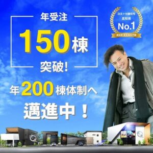 昨年度の話になりますが、なんと2025年8月で年受注150棟突破しました!何と2位のハウスメーカーにそろそろ2倍!受注好調で次はいよいよ年200棟!社員が成長してるので、ここからの成長率は高くなりそうです
