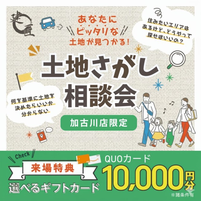 【加古川店限定】土地探し相談会!|高知で新築注文住宅なら【建匠】家族の笑顔を生み出す工務店
