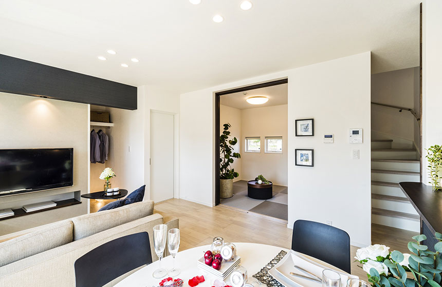 和室やリビング階段など今人気のこだわりポイントも詰まったモデルです。 -