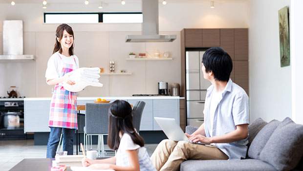 充実収納の家事ラクの家キッチンはシンクとコンロが分離しているセパレート型のキッチンを採用することで、料理における家事導線を最短にすることができます。